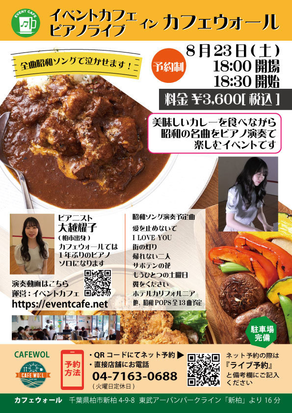 ※ネット予約の際は『ライブ予約』と備考欄にご記入ください