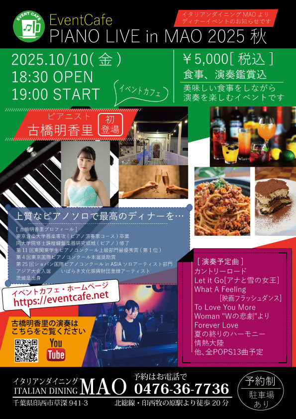 初の「外国系」レストランでのピアノ&ディナーになります