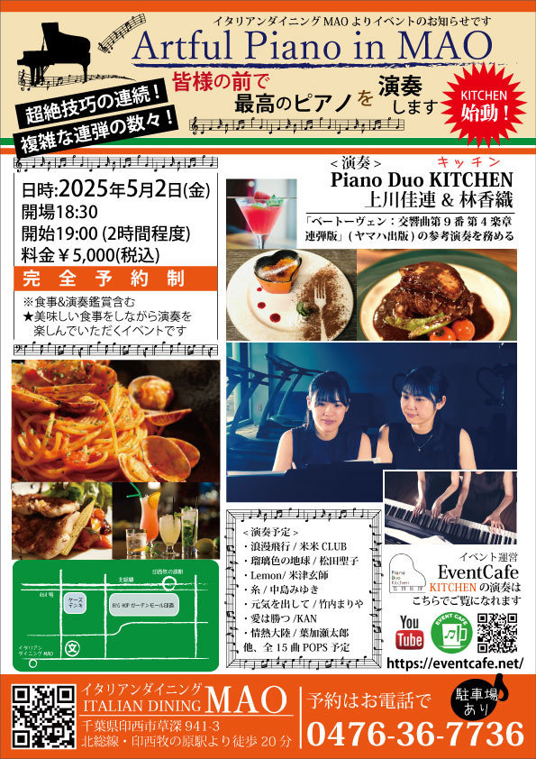 ピアノデュオ・キッチンの超絶技巧ピアノを楽しんでいただけます